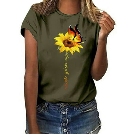 Women Sunflower Tops Ladies Casual Short Sleeve T Shirt Crew Neck Floral Print Blouse Tee Shirt Top Walmart Canada