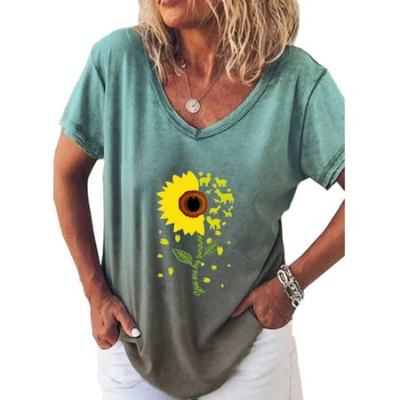 Women Sunflower Print Gradient V Neck Short Sleeve T Shirt Casual Baggy Blouse Walmart Canada